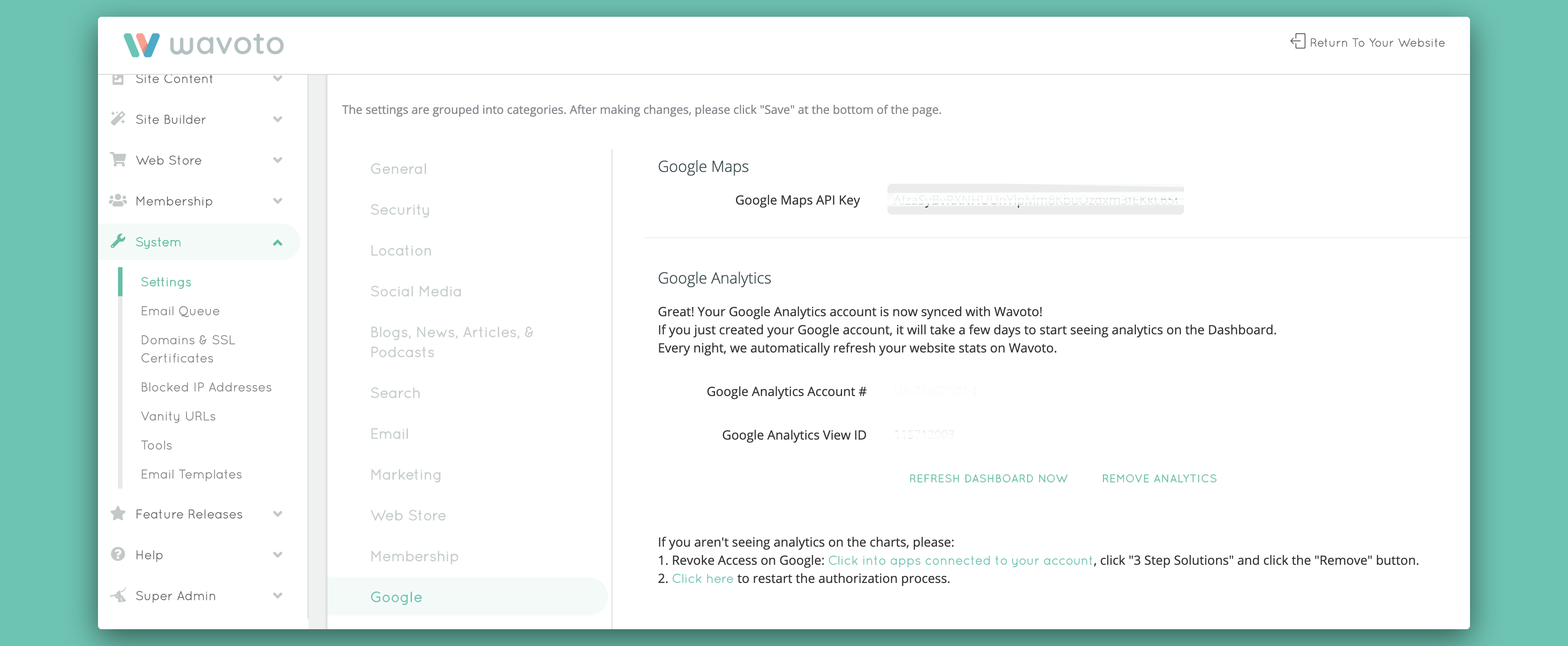 When you're signing up your account you need to connect it to your website. On many website's, you can place the HEAD text Google Analytics provides you on your website, with Wavoto you simply need to give authorization within the "Settings" of your site.