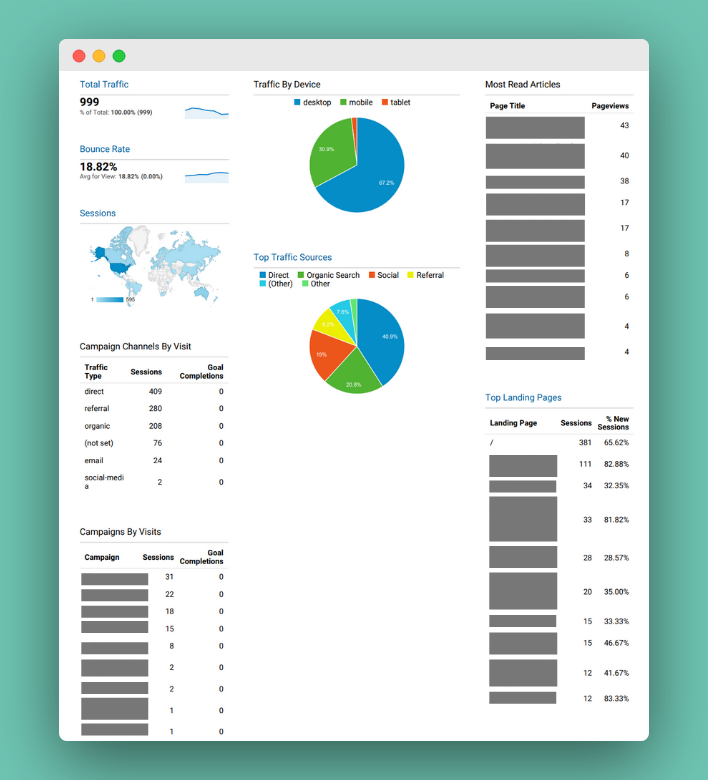 You may not learn something every week, but each week you want to track the numbers and see how they fluctuate. If your bounce rate keeps climbing, look at what might be sending visitors away. If one week your website traffic plummets, make sure your website is functioning. You can also see how your campaigns are performing, which blog articles bring in the most traffic and if you need to better optimize your site for mobile traffic.
