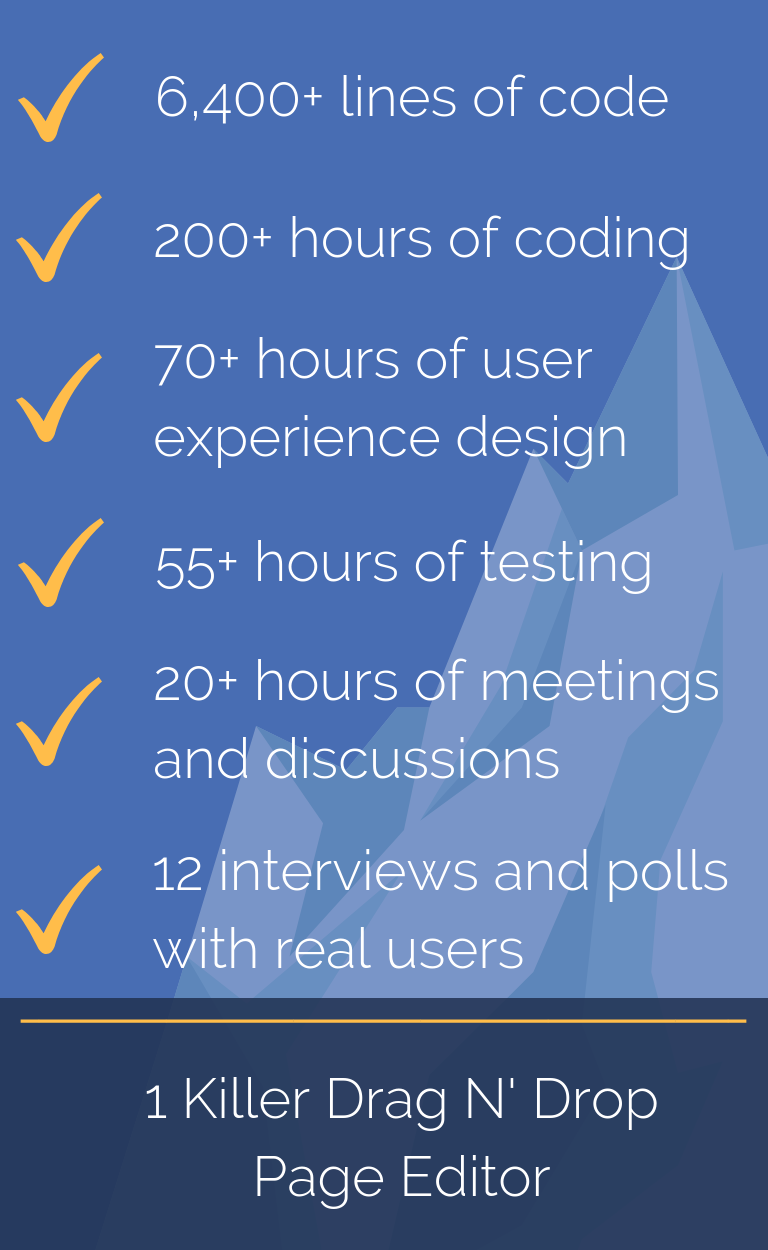 We're not the type of team to brag about our work, but we just have to share the time and effort that went into building this all-new web page editor for you. We're not going to give away all our secrets, but we'll share the tip of the iceberg of creating the drag n' drop web page editor: