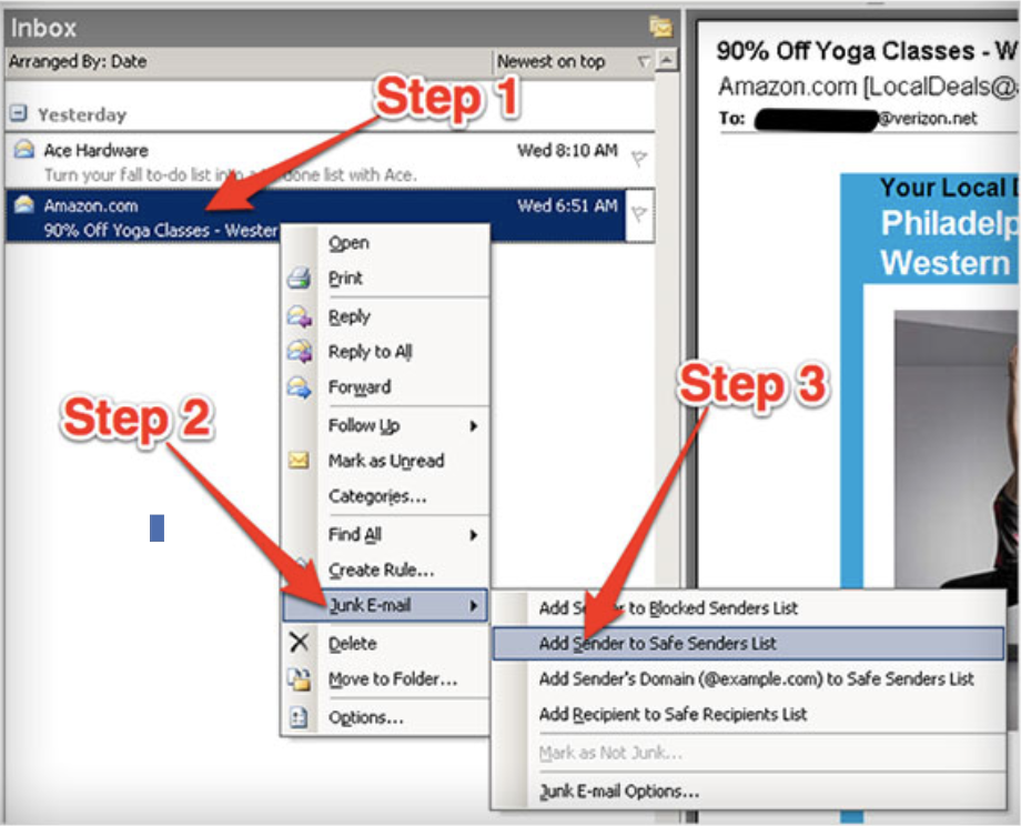 3. Click “Add Sender to Safe Senders List.”