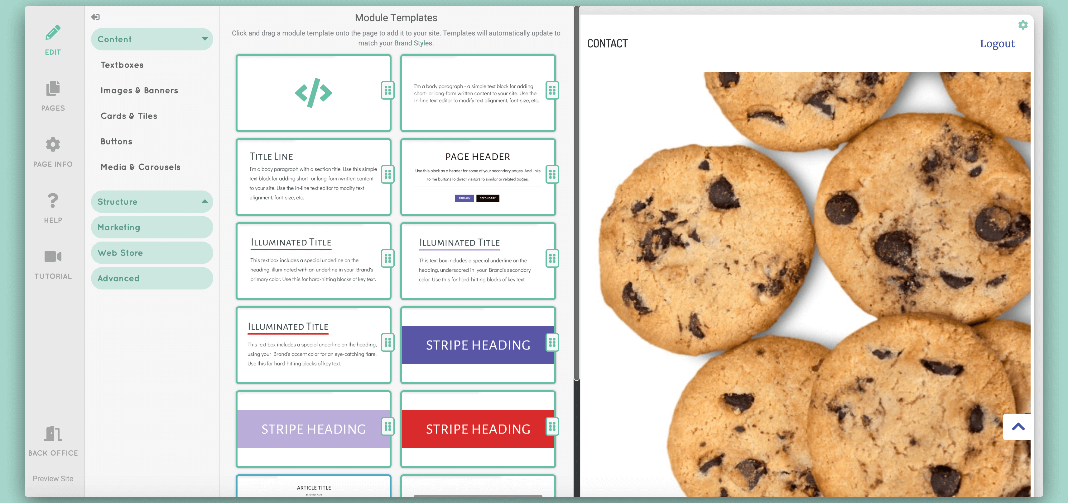 Now, it doesn’t get any simpler than drag and drop, so what do I mean by “advanced”? Well, you have more content options to choose from because of My Brand! You can grab any of the content blocks we create, any page template we create and add it to your website and, as Emeril says, BAM! It matches your brand and it's ready to go!