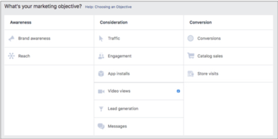 Everything you do to create an effective ad campaign will revolve around how you answer this question. Facebook Business has narrowed the answer down to three critical areas for the first step in creating an ad, choosing an objective.