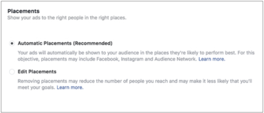 You can choose which platform in the Facebook family to place your ad. Pick Facebook, Instagram, Messenger, Audience Network, or all of the above. In the beginning, you should try several different ad mixes to see what works best for your niche.