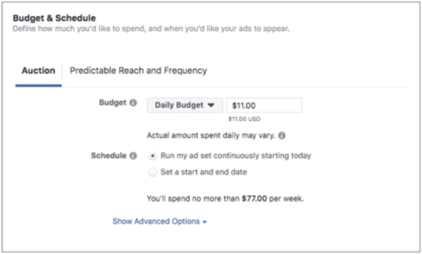 Facebook ad costs are based on bids which are based on what you set as your daily budget. Facebook creates the bid for you but I recommend learning how to investigate and tweak your bids a little. Remember, you’re not the only one selling!