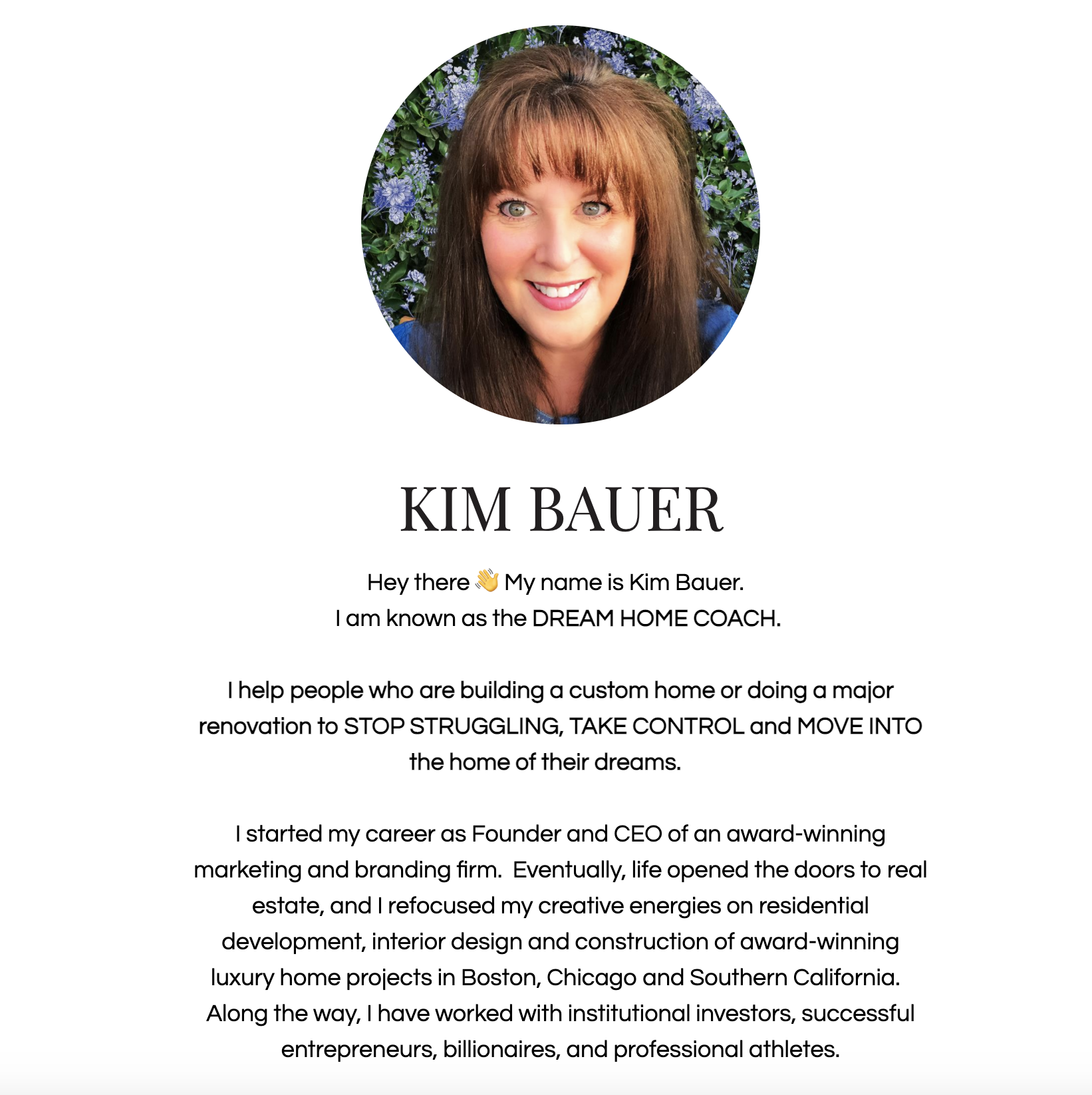 A great example is Kim Bauer’s microsite. Once her audience visits the microsite, they’re immediately greeted with a quick bio and then multiple call-to-action buttons. Kim immediately connects her audience with content that positions her as an authority in her industry.
