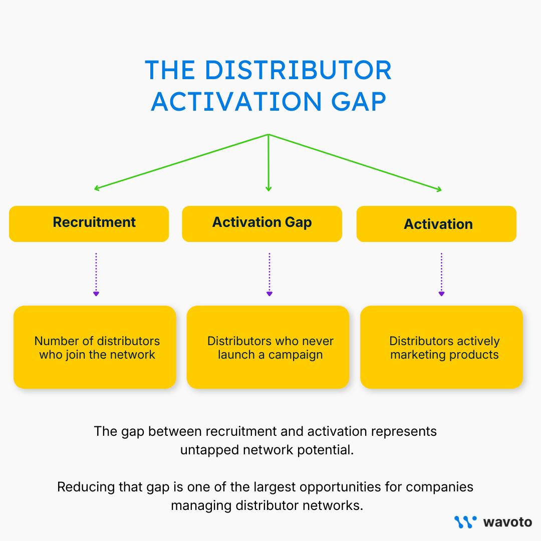 Recruitment measures how many people join a distributor network. Activation measures how many actually start doing something meaningful once they join.