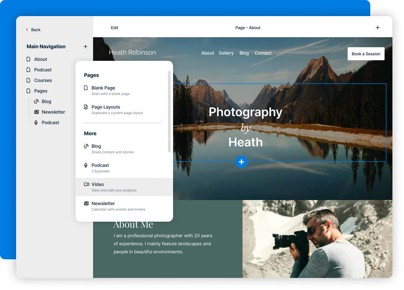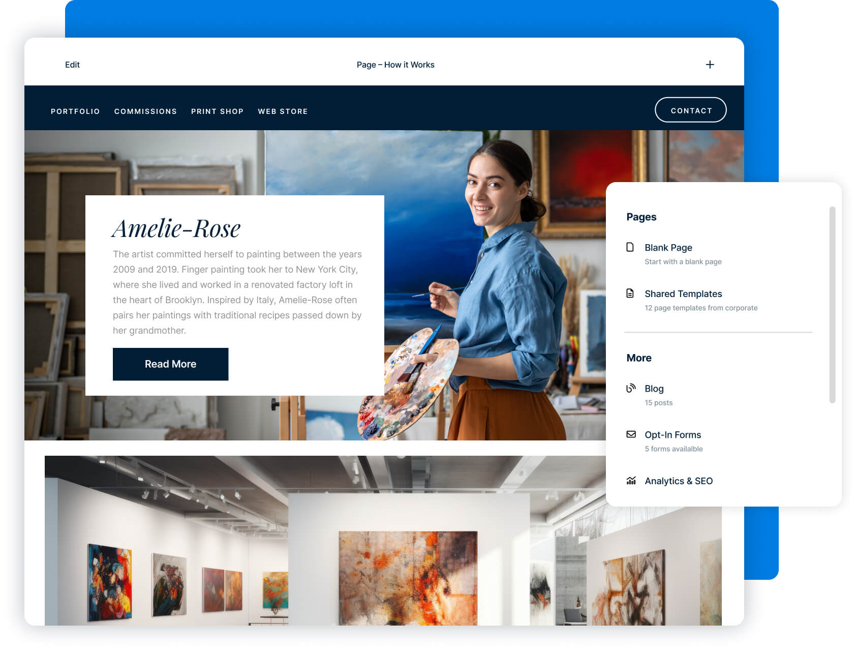 Create your dream website using customizable templates, automated branding tools, and a drag-&-drop editor. Build anything you want — be it a beautiful portfolio for showcasing your art, or the perfect one-page CV for your job hunt.