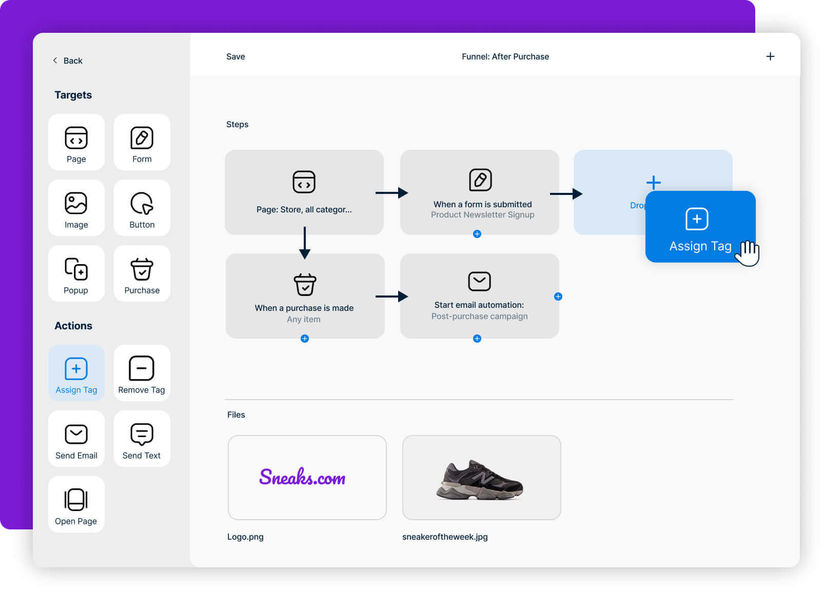 Add a new button that can link to a website or webpage, pop-up a newsletter sign-up, link to your scheduling calendar, download a file, pop-up a contact form, make a purchase, or connect to a funnel.