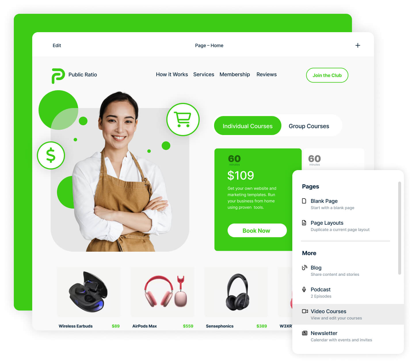 Whether you're selling merch or service packages, we've got you covered. Grab this upgrade to get a complete shopping portal on your website. And the best part? Zero transaction fees. Connect listing pages to your marketing tools to drive traffic to your store, and keep things running smoothly with powerful inventory tracking features, shipping rules, tax settings, and more.